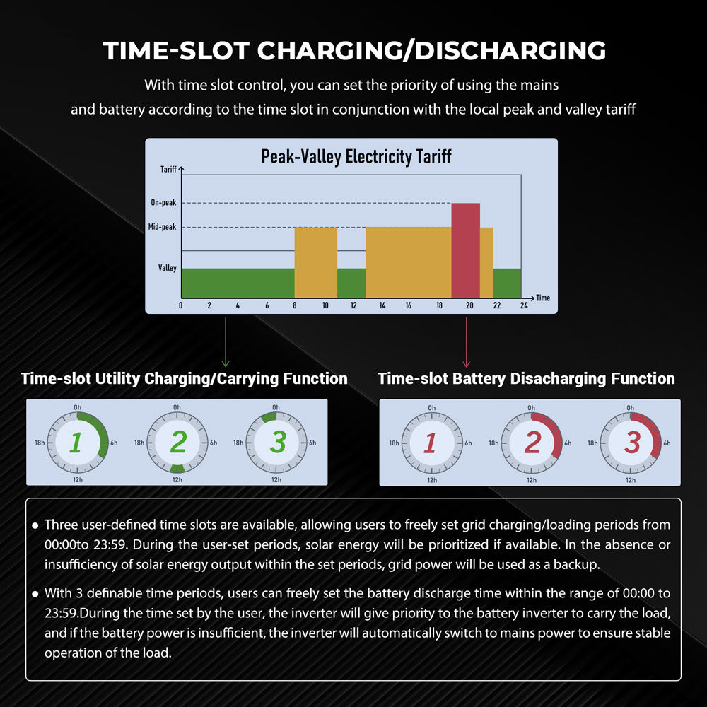- ★ Multiple Charging Modes: Solar Hybrid Inverte have 4 charging modes: Only Solar, Mains First, Solar First and Mains & Solar hybrid charging.