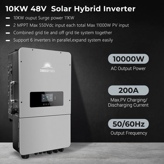 SUNGOLDPOWER | 10KW Hybrid Inverter 48V Split Phase Grid Feedback Batteryless
