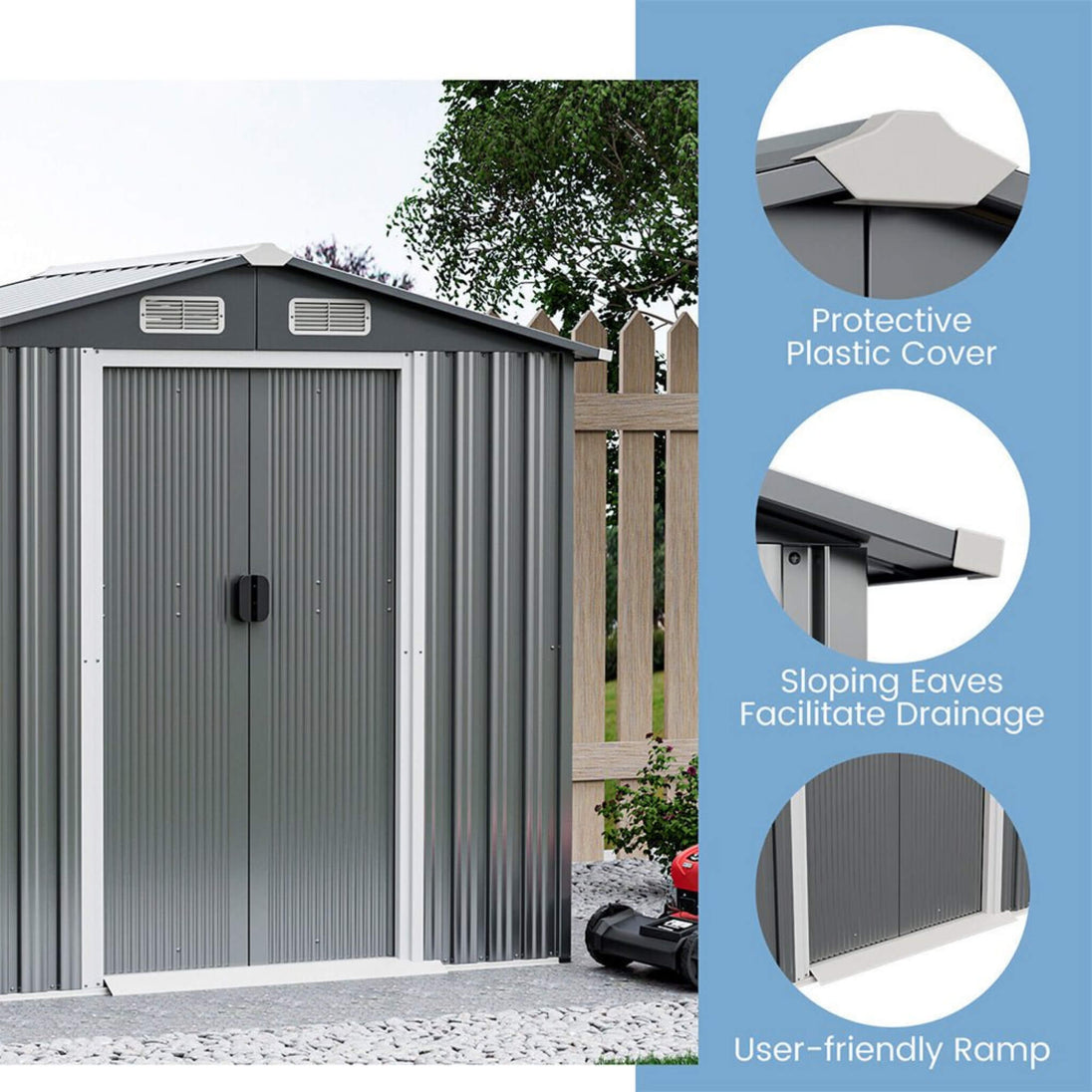 [06X04FT] Alora Premium Garden Galvanized Steel Storage Shed W/ Lockable Sliding Doors (SAK75842)