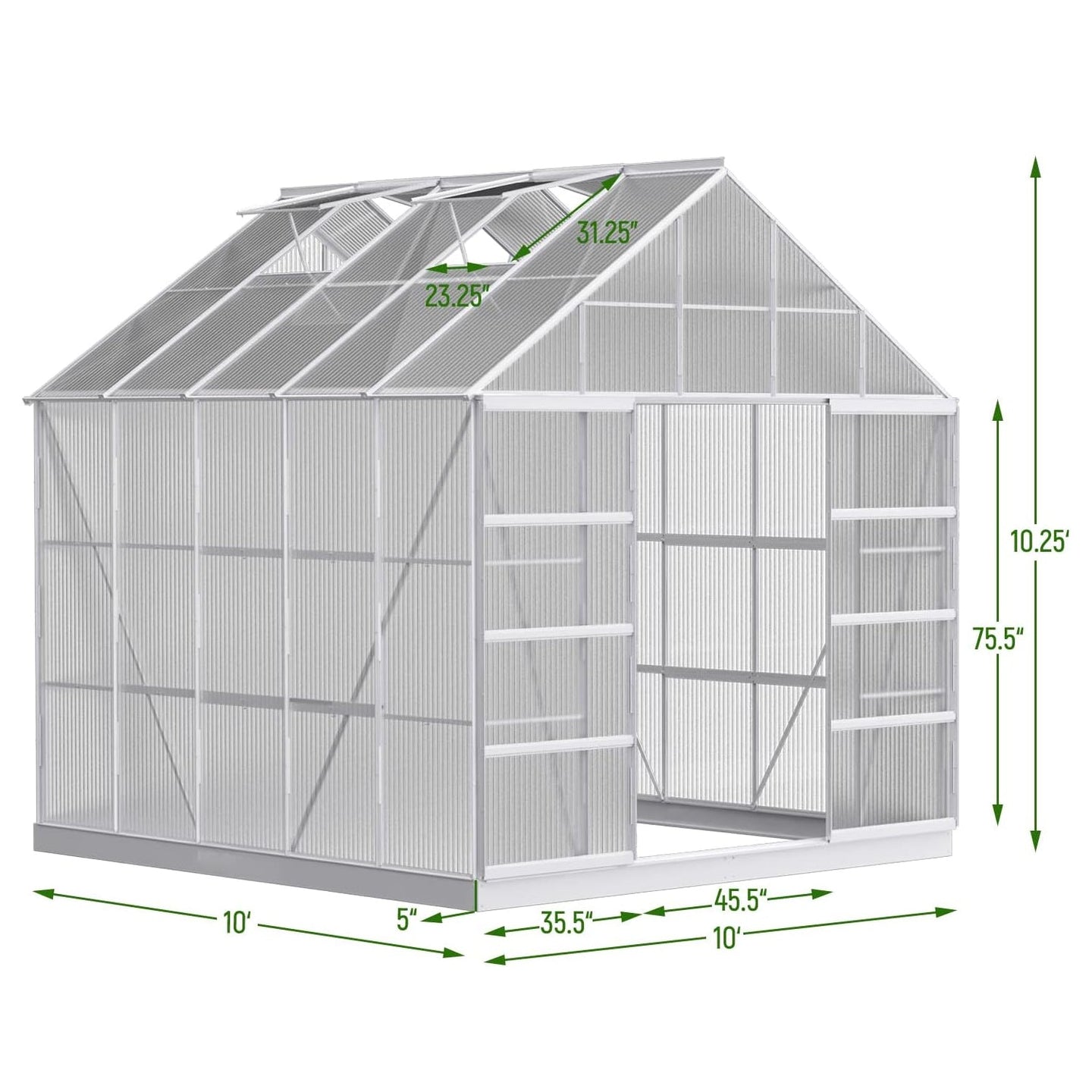 [10X10FT] Premium Outdoor Aluminum Walk-In Greenhouse With Polycarbonate Panels & Sliding Doors (94638275)