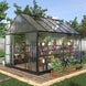 • Elevate your gardening to the next level with this aluminum greenhouse! Get your plants all the fresh air they need and stay cool while you work. Four window vents and two sliding doors provide optimal ventilation and effortless accessibility.