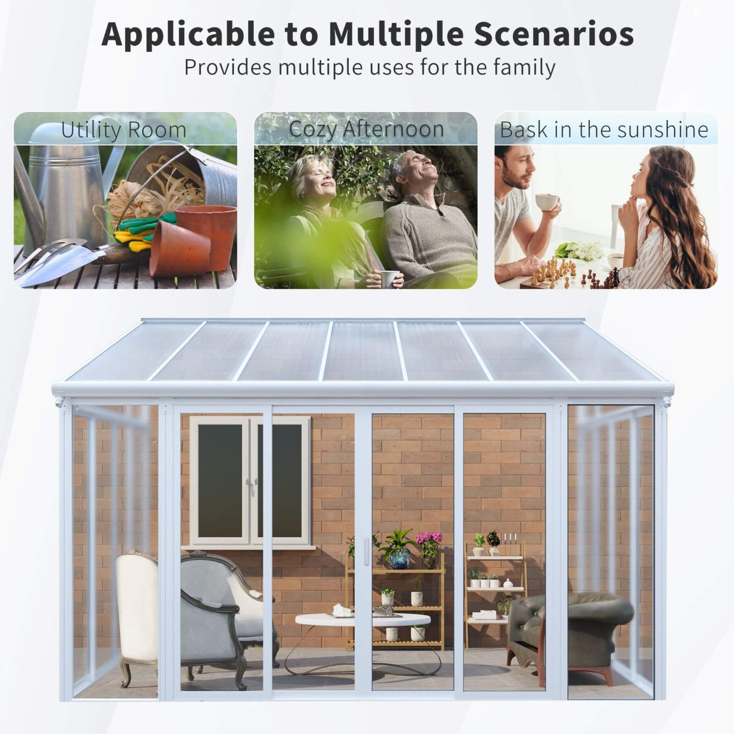 [10X14FT] Heavy-Duty All-Season Aluminum Alloy Patio Sunroom With 3 Lockable Sliding Doors (SAK62713)