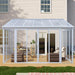 Built to withstand the elements, this sunroom features a robust, rust-resistant aluminum alloy frame reinforced with galvanized steel connections. The double-layer polycarbonate roof panels are engineered to handle various weather conditions, while the built-in gutter system efficiently manages rainwater and snow runoff. You can rest easy knowing your new favorite room is constructed for longevity, resisting corrosion and impact to stay beautiful for years to come.