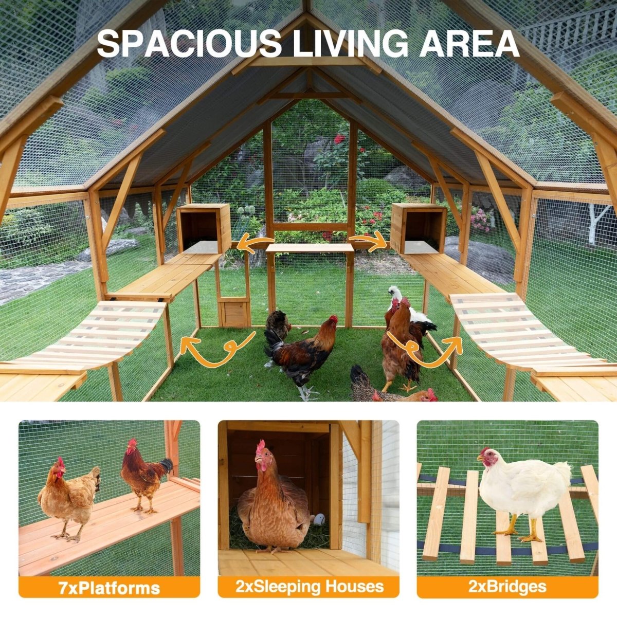 Functionality is at the heart of this design. Two smaller lift doors allow your kittens or chickens to enter and exit with ease and can even be connected to another pet gate for expanded roaming. With a generous 56.54 sq. ft. of space, there's plenty of room for multiple pets to run freely, and even for you to join them inside. It’s the perfect way to give your pets the freedom they crave with the security you need!