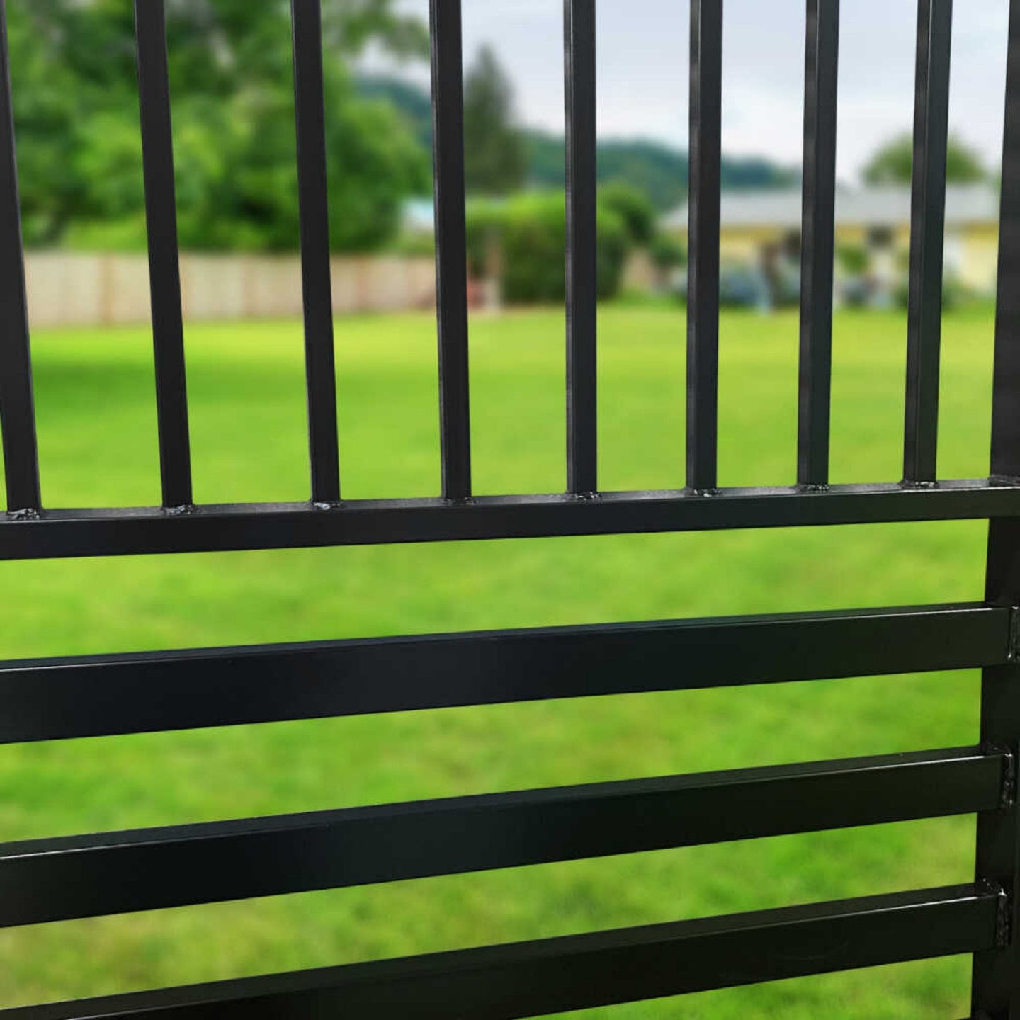 Experience the peace of mind that comes with superior protection. Unlike lightweight aluminum options that can bend under pressure, this gate is constructed from fully welded, heavy-gauge steel that stands strong against impact. It offers robust security for your property without compromising on style, giving you a functional barrier that is as sturdy as it is sophisticated.
