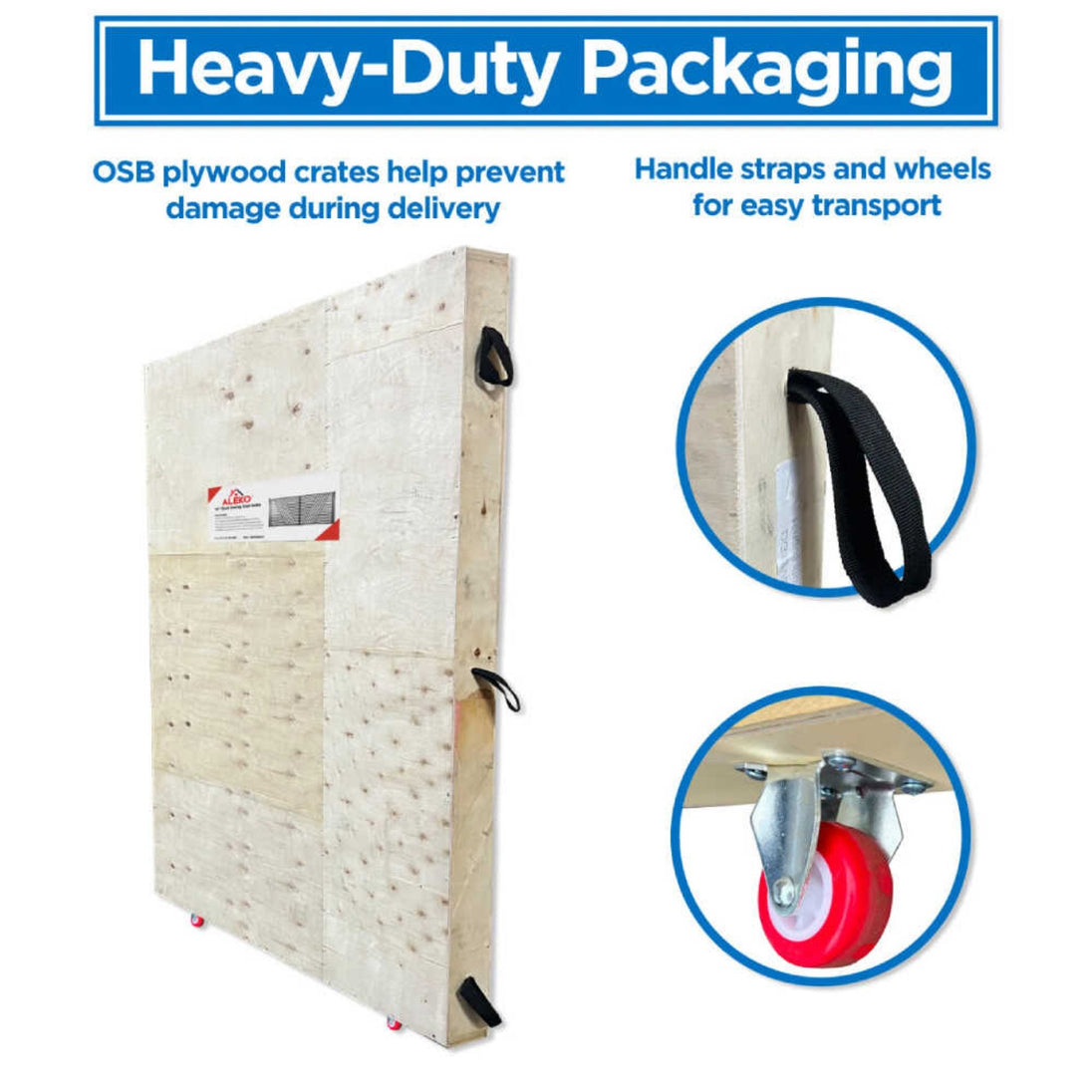 - Your investment is protected from the factory to your driveway with heavy-duty OSB plywood shipping crates that feature convenient handle straps and wheels for easy transport and installation.