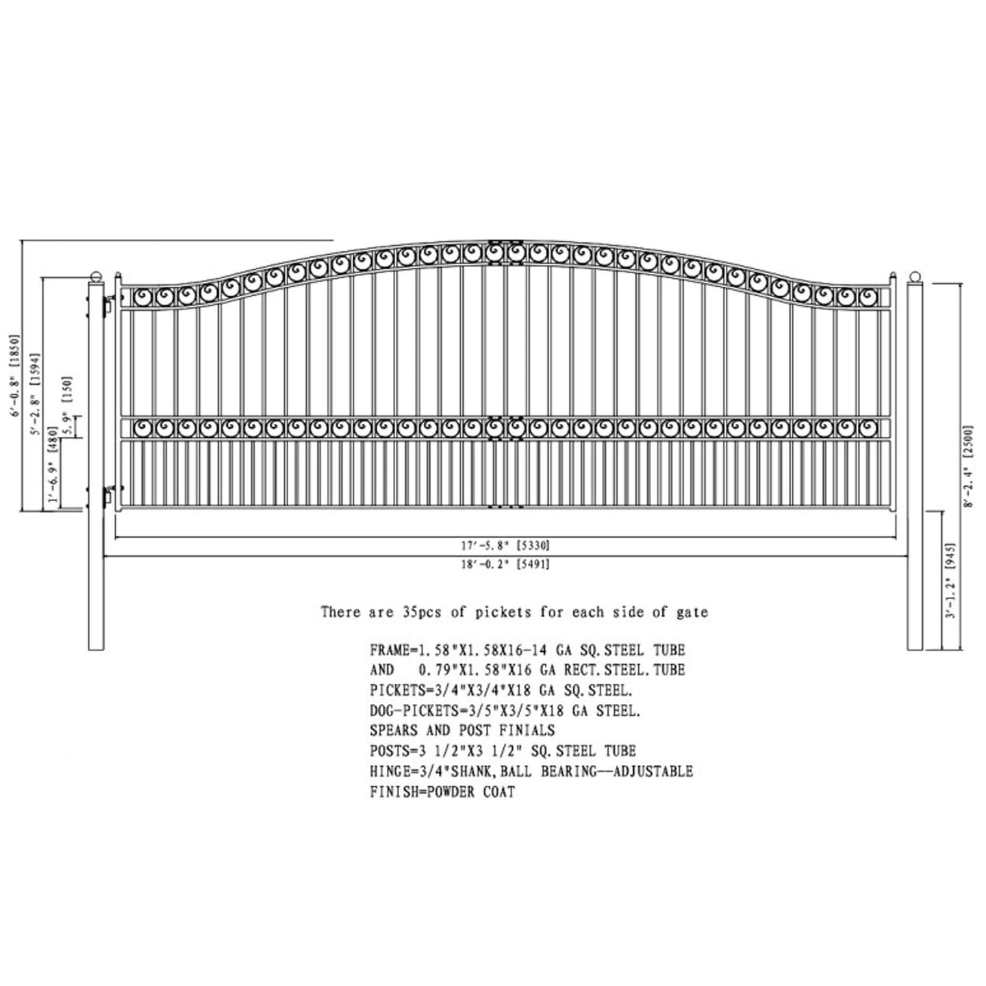 [12-18FT] Heavy-Duty Paris-Style Galvanized Steel Single-Swing Driveway Gate (SAK78643)