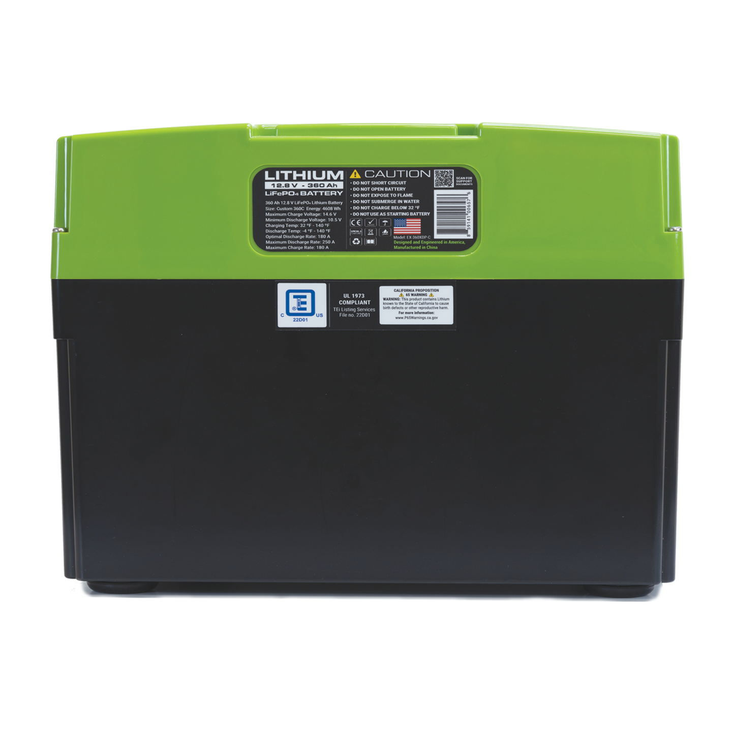 Experience the power and performance of advanced LiFePO4 chemistry with the e360 Battery, designed and engineered in Central Oregon to meet the highest safety and performance standards, including UL1973 compliance on the entire battery. Upgrade your RV, overland vehicle, van build, marine vessel, or off-grid home today and enjoy the peace of mind that comes with knowing you have a reliable and long-lasting power source from Expion360.