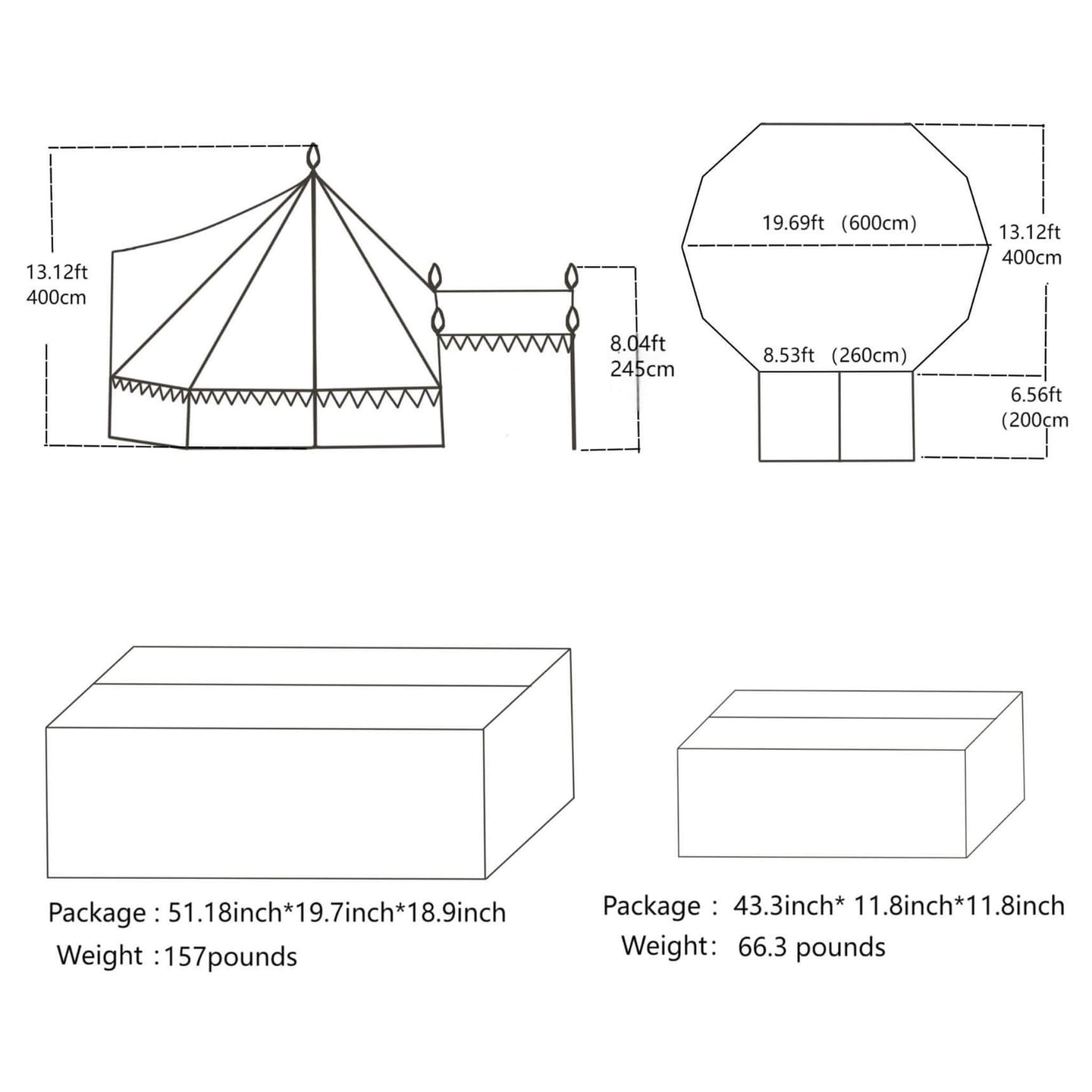 Transform your outdoor adventures into a luxurious escape with the [13X19FT] Extra Large Heavy Duty Outdoor Four Seasons Glamping Canvas Bell Yurt Tent. Designed with durability and versatility in mind, this spacious canvas tent provides a reliable sanctuary no matter the weather or time of year. Whether you're camping with family or hosting a group getaway, its generous size comfortably accommodates beds, furniture, and all the essentials for a cozy retreat.