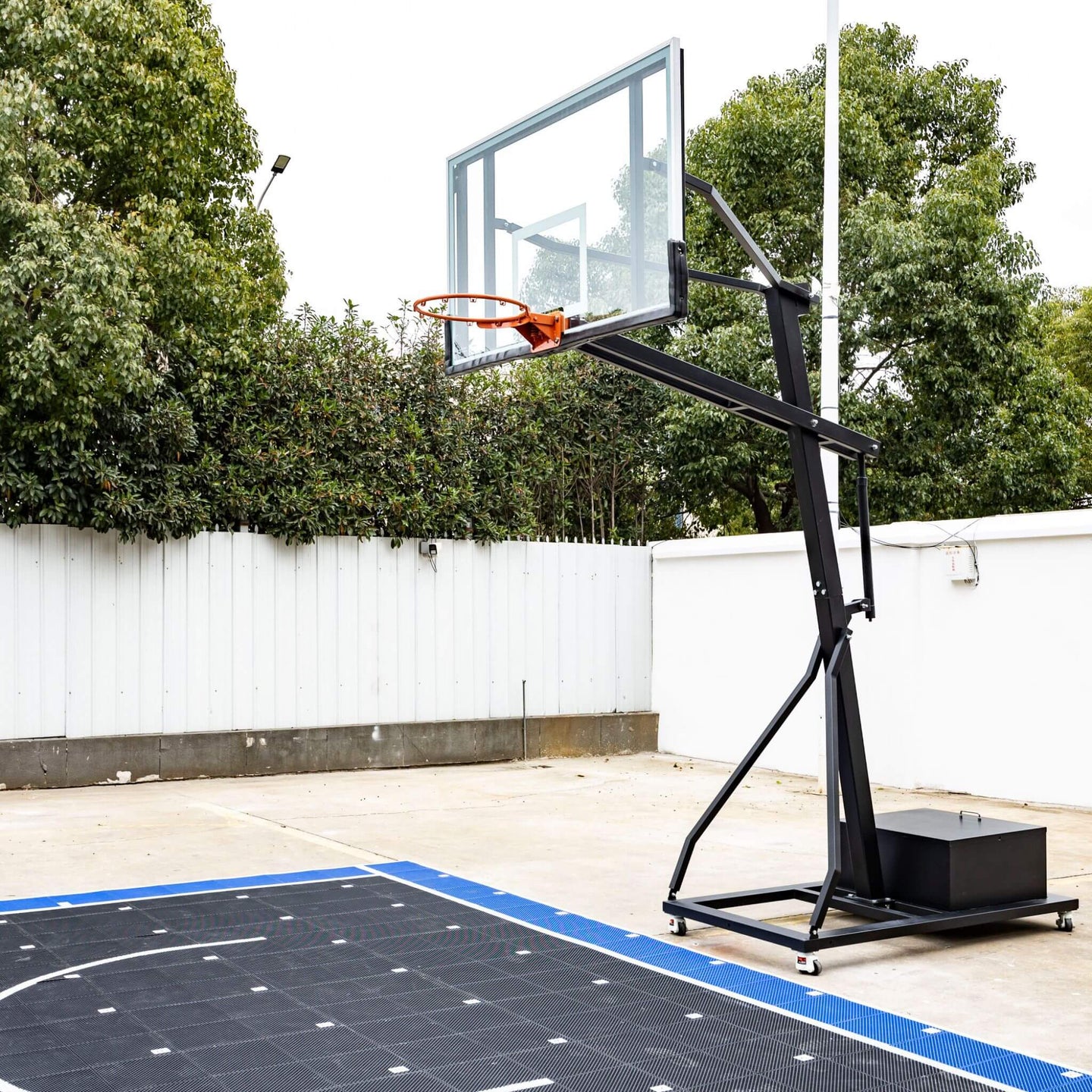 • Included with the system is a spacious 18 ft × 24 ft floating basketball court, specifically designed for superior anti-slip and shock-absorbing performance to ensure safety and comfort during intense games.