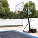 • Its fully adjustable hoop height, ranging from 5.6 feet to 10 feet, caters to users of all ages and skill levels, making it ideal for families and players of varying abilities.