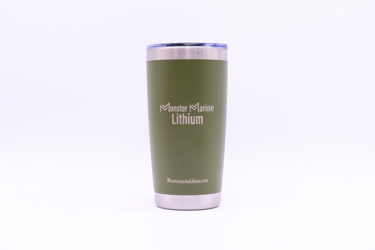 20 ounce stainless tumbler great for keeping drinks, hot or cold with magnetic sliding lid.