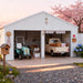 • Features two large garage door openings, each measuring 100 inches wide by 88 inches high, along with a convenient side entrance door for easy access.