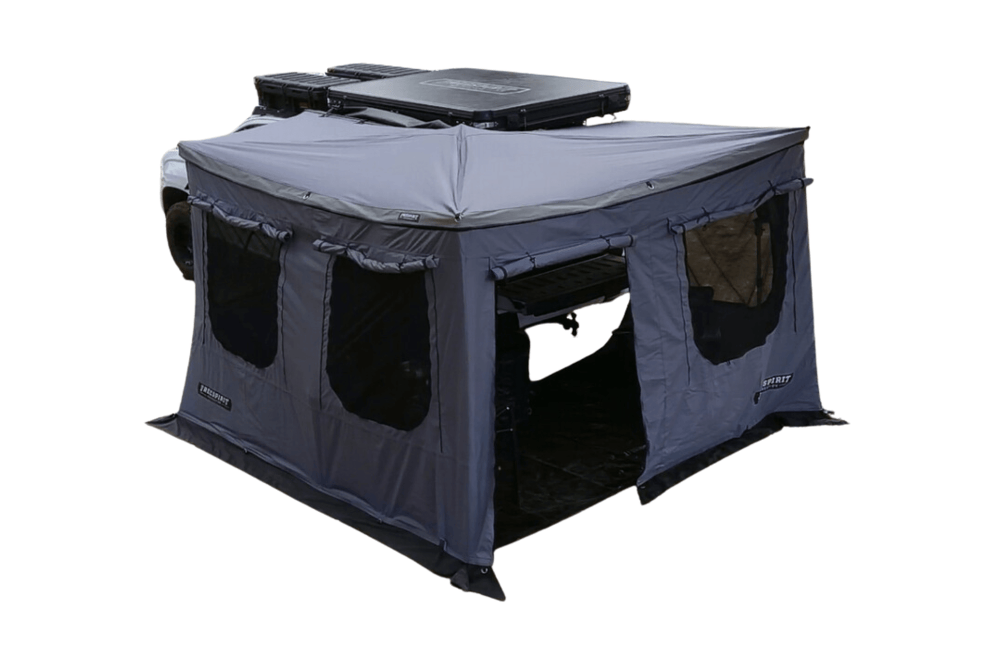 Not compatible with 270 Awning V2 . The 270 Awning room is the perfect addition to your FSR 270 Awning.  Awning room has five large widows, main door and flooring included.  The Awning room also has two vehicle access windows in the back.  Or detach/Unzip the back of the Awning room wall to allow full access to your vehicle. The awning room attaches to the awning by velcro around the entire perimeter of the vehicle as well as the floor.
