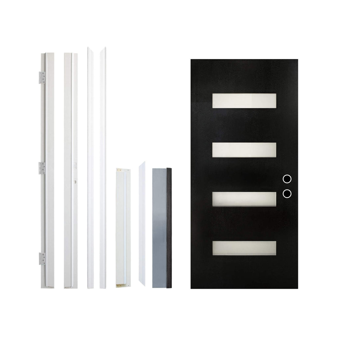 • A contemporary frosted glass panel is elegantly integrated into the design, allowing natural daylight to brighten your entryway while ensuring complete privacy from the outside.