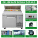 Beyond practical benefits, this prep table is sustainably engineered with eco-friendly R290 refrigerant, providing DOE-compliant cooling while reducing energy consumption and environmental impact. It’s built to last with a corrosion-resistant stainless steel exterior, rounded corner interiors for easy cleaning, and caster wheels for effortless mobility. This is more than a prep table; it’s the heart of pizza excellence in your kitchen.