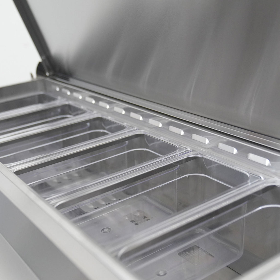 • This pizza prep table uses R290 refrigerant and meets DOE standards to save energy and protect the environment.