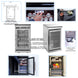 Beyond the generous cooking area, you get the convenience of a built-in outdoor-rated refrigerator with a stylish glass door for perfectly chilled drinks, ample storage cabinets and drawers, elegant granite countertops, and captivating on/off red/white changing control knob lights to set the mood.