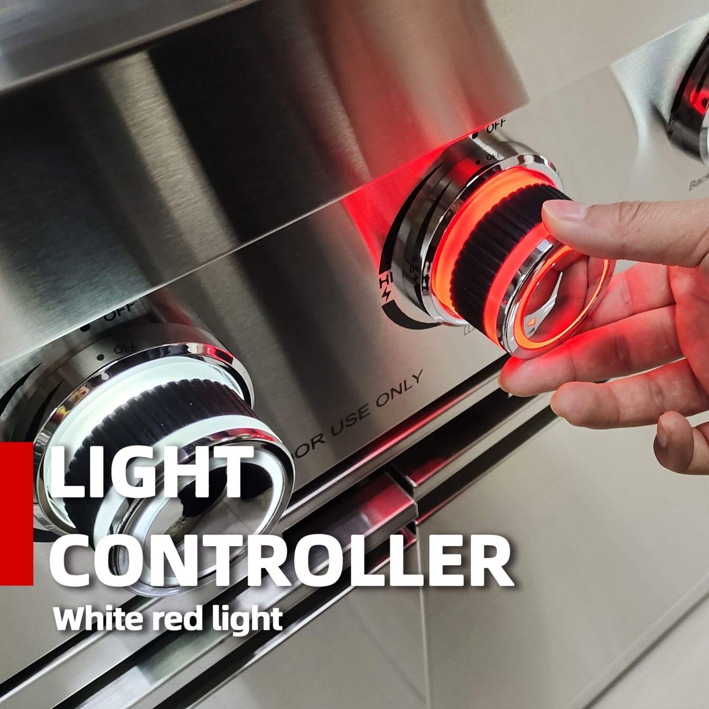 • LED control knob lights switch between red and white, setting the mood and helping you monitor burner status easily.