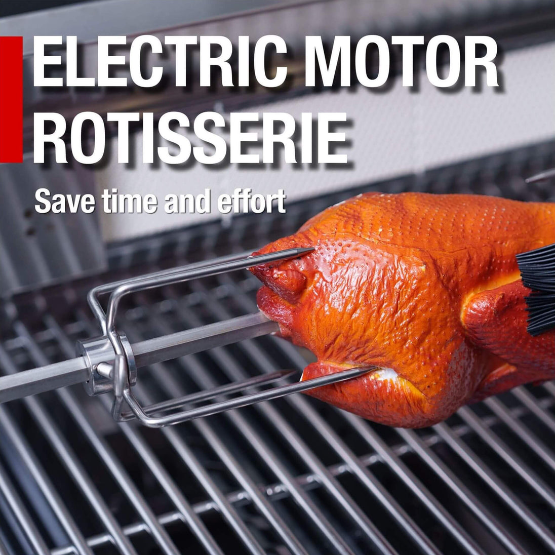 • With 6 burners and a rotisserie, enjoy faster, versatile cooking for large gatherings or family dinners.