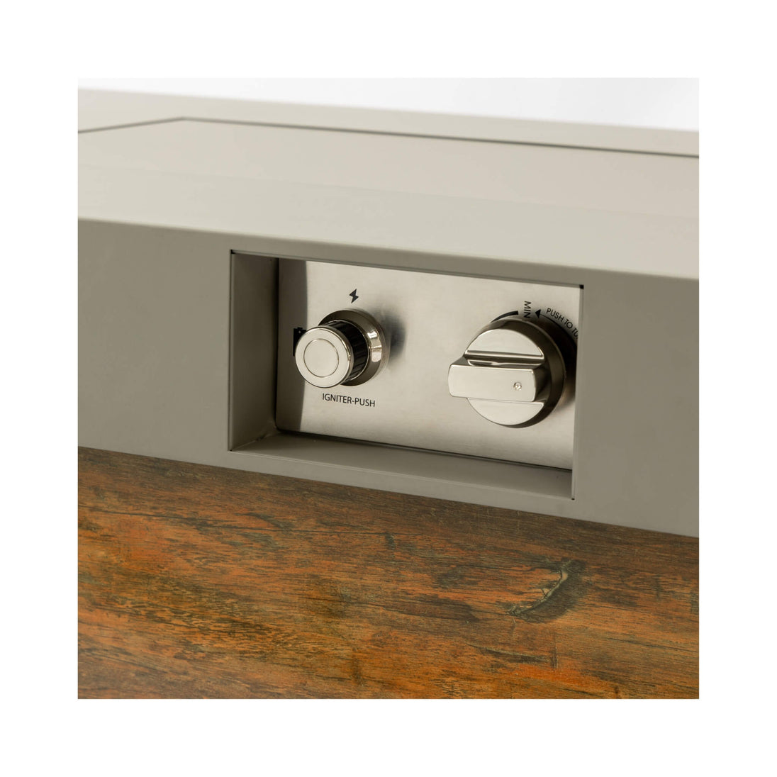 • Getting the fire started is effortless and secure! Just push the button and turn the knob for instant, adjustable flames. Built with a premium stainless steel burner and a wood grain finish, this fire table is designed for lasting elegance and low maintenance.