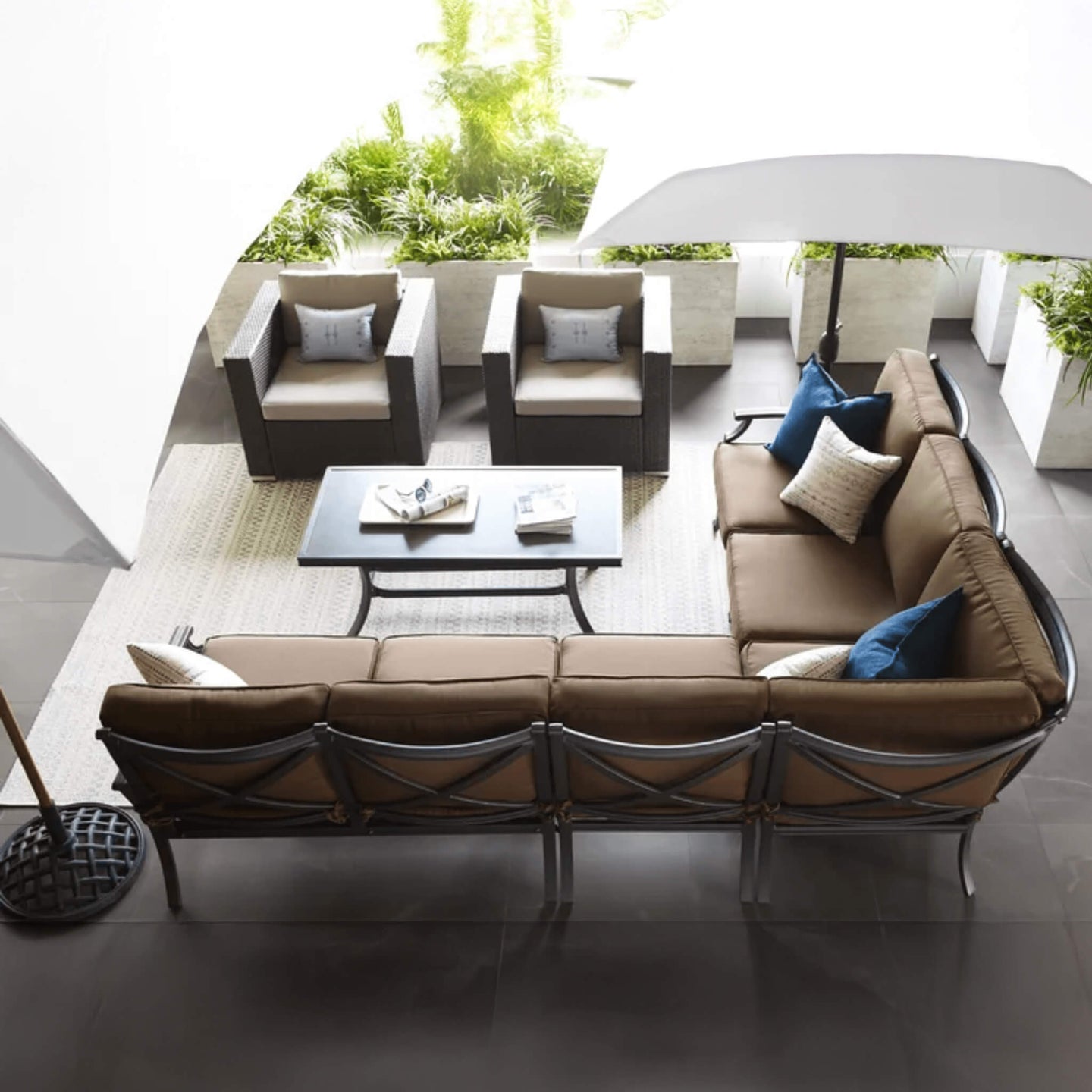 • Sunbrella fabric cushions deliver premium outdoor performance, resisting fading, moisture, and wear while maintaining a soft, upscale feel.
