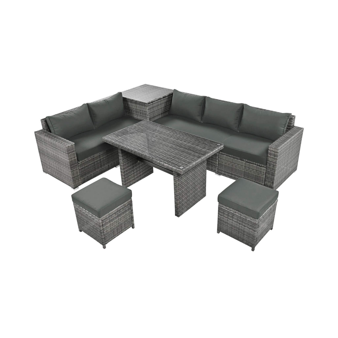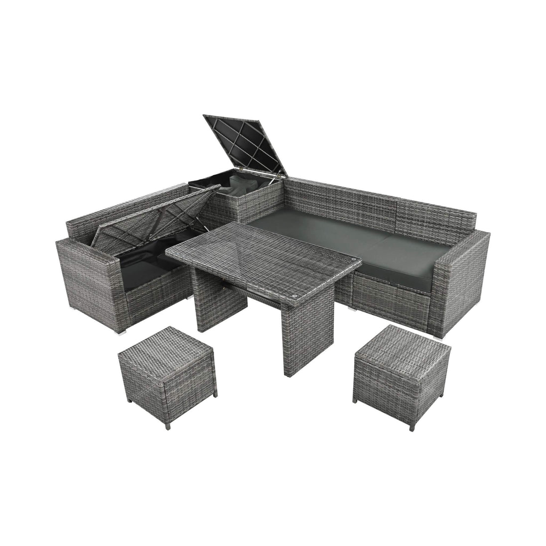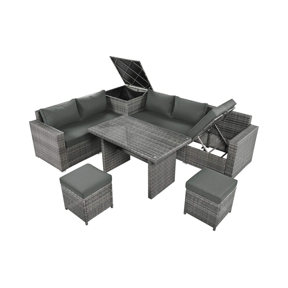 Alora Outdoor 6-Piece All-Weather PE Rattan Sofa Set With Adjustable Seat, Storage Box, Removable Covers, And Tempered Glass Table Top (SAK37221)