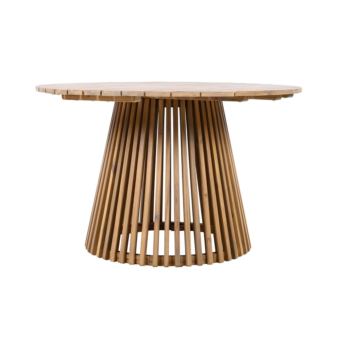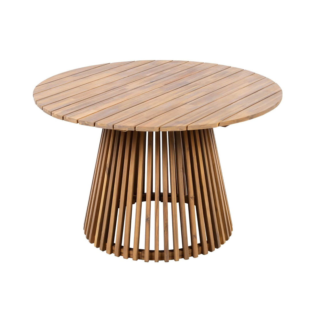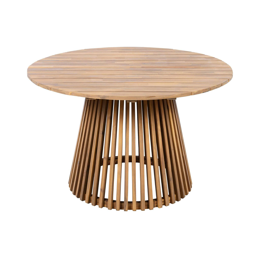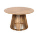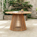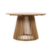 • A 47.25-inch circular Acacia wood tabletop with a unique slatted base for stability and style, holding up to 300 lbs.