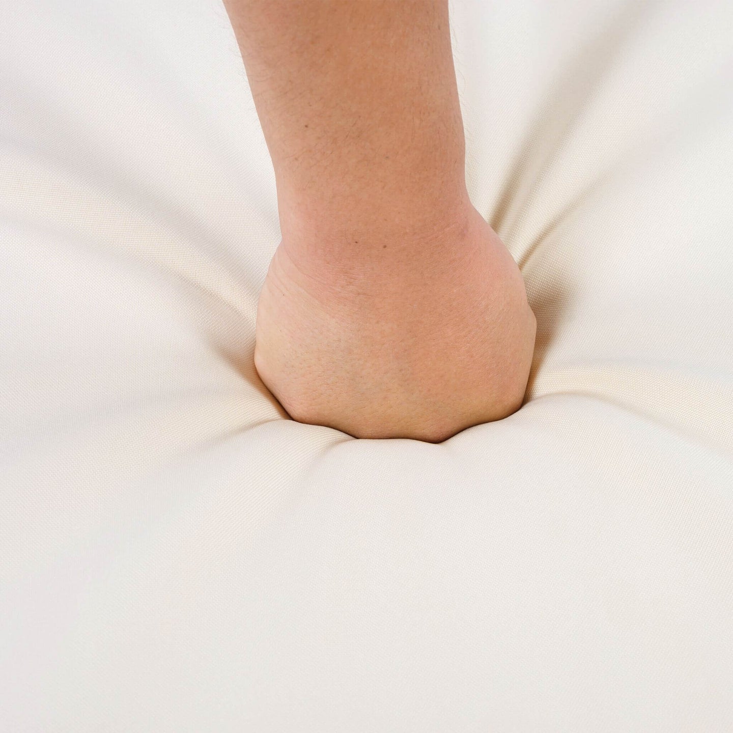 • Enjoy superior comfort with wooden armrest chairs featuring plush 2-inch thick beige cushions, perfect for relaxing outdoors.