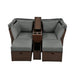 • Includes 4” thick high-density foam cushions and pillows that are water-repellent and soft for added comfort.