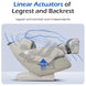 - Equipped with separate linear actuators for the legrest and backrest, this massage chair allows independent adjustment for tailored positioning and focused relaxation, delivering a personalized and revitalizing experience.