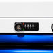 - Available in white with black drawers or black with grey drawers, finished with chemical-resistant powder coating.