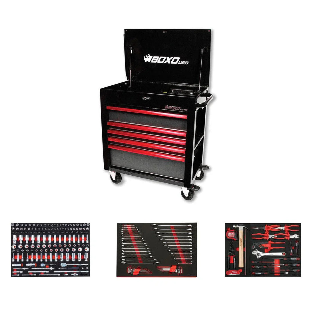 35" 5-Drawer Flip-Top Service Cart with 222-Piece Master Tool Set