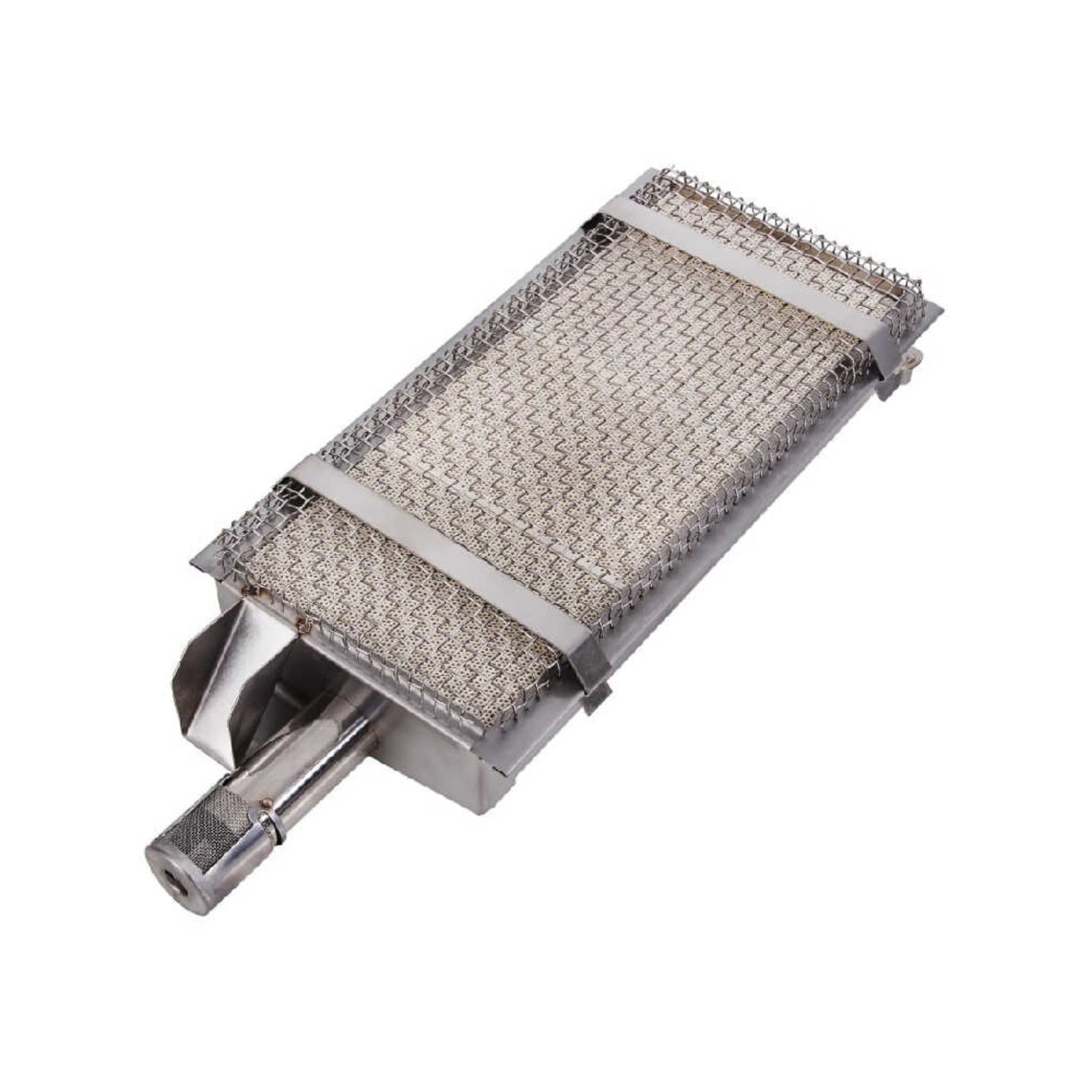 - Heavy-duty H-shaped stainless steel burners and large infrared burner provide unparalleled grilling flexibility. Achieve the perfect sear on steaks and other grilled foods effortlessly.