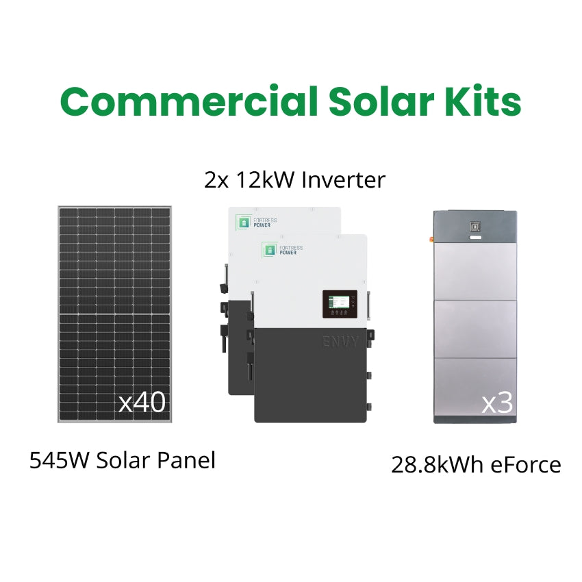 Fortress Power | 21.8kW Solar Kit for Farms & Businesses 2x Envy Inverters, 40x 545W Solar Panels