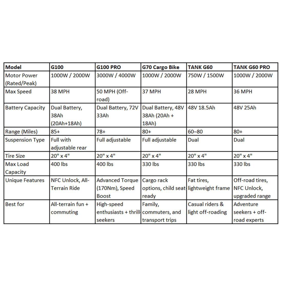 - Experience smooth and stable rides on any terrain with G70's fat tires and adjustable suspension system. From city streets to mountain trails, enjoy comfort on any surface.