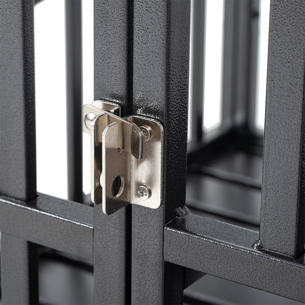 - The front door provides your pet with easy entry and exit, while the four 360° rotating locking casters allow you to quickly move your kennel to any desired location and keep it there with secure locks.