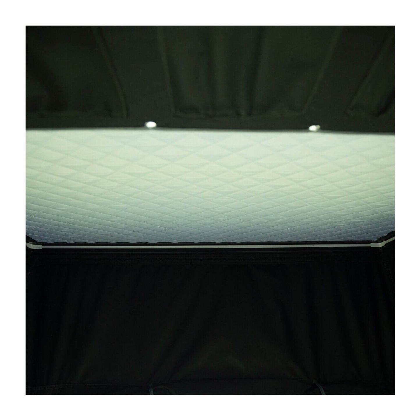 Additionally, the tent has three exterior openings with lockable latches and black ladders. Plus, a fly screen keeps in fresh air while cutting out condensation, keeping it light and breezy inside all through your adventure. And don’t forget the internal storage chest for storing key items such as phones, wallets, or keys plus a waterproof shoe storage bag located just above! And not only that—this tent even comes with LED light strips so you can safely explore in the wee hours of the night.