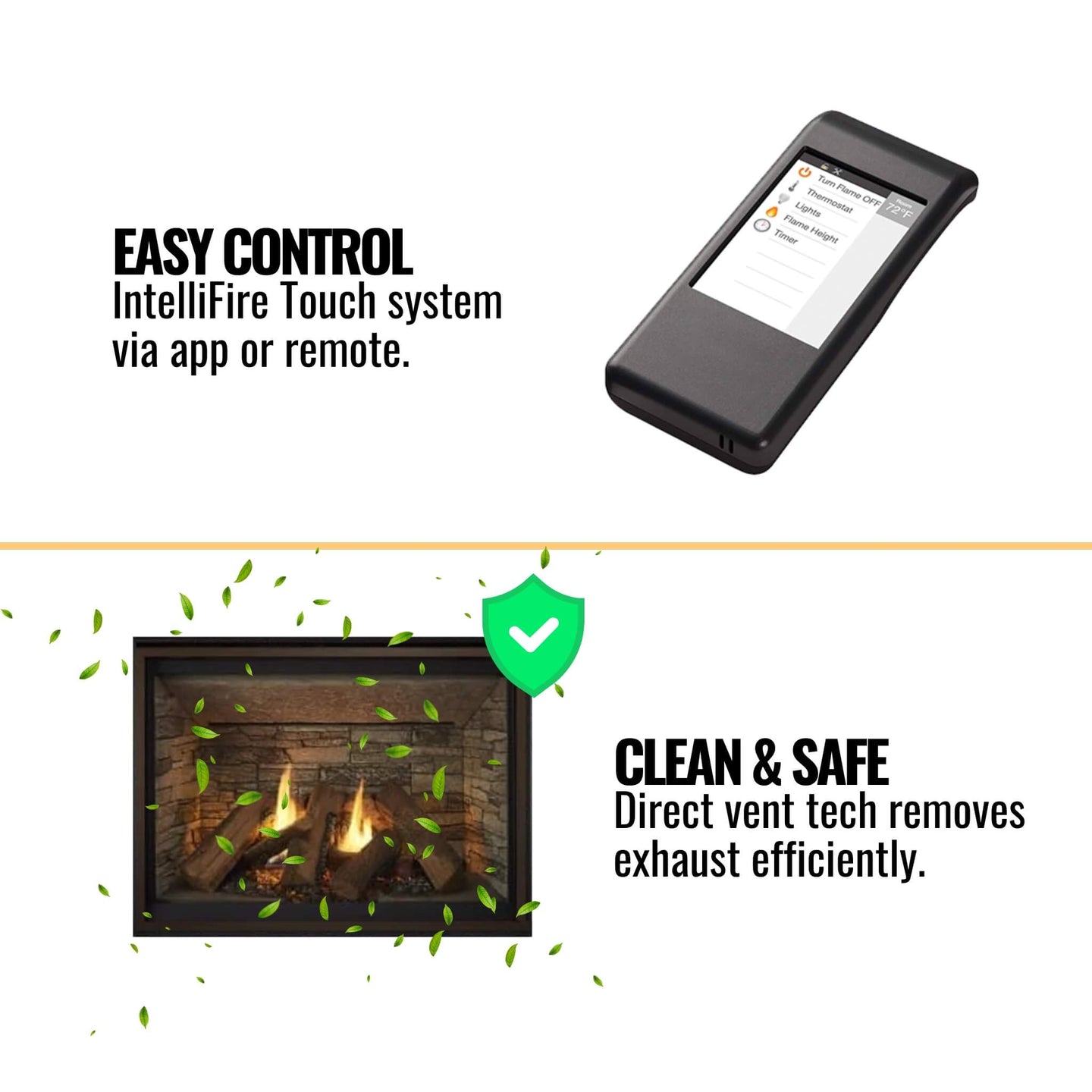 Its IntelliFire Touch Ignition System ensures reliable operation, while the dynamic thermostat intelligently adjusts flames to maintain your desired comfort level. And with the IntelliFire App, you can control your fireplace from anywhere, anytime, using your smartphone or smart speaker.
