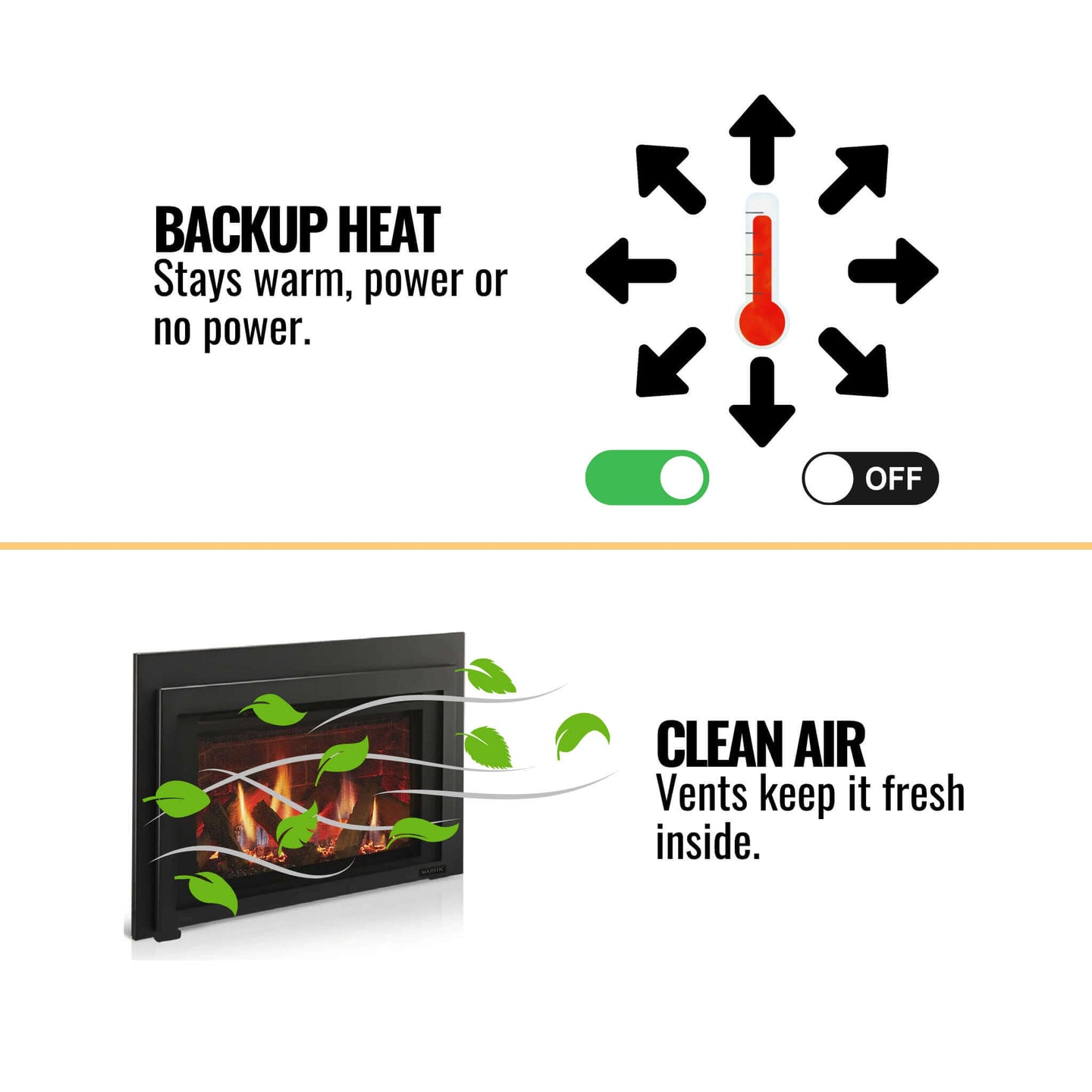 • Safeguard your indoor air quality with our efficient direct vent system. It effectively expels fumes and combustion exhaust outside, ensuring a clean and safe environment in your home.