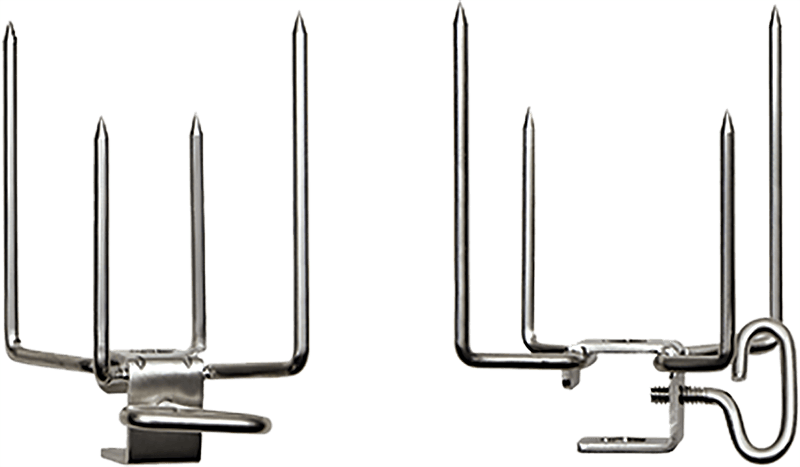 Elevate your grilling experience with the Napoleon Commercial Quality Rotisserie Forks, designed to hold multiple pieces of meat securely while they roast to perfection.