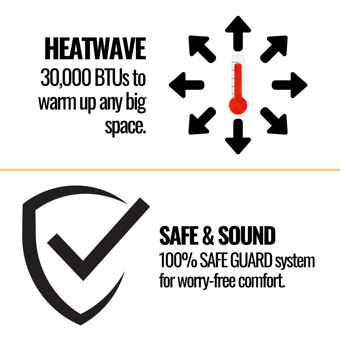 - Easily heat large spaces efficiently, with up to 30,000 BTUs keeping you warm even on the coldest days.