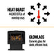 - The stove features heat-radiating ceramic glass that not only enhances its sleek look but also maximizes heat distribution. Hand-painted, realistic logs provide a traditional, hand-built fire appearance, adding charm to any room.