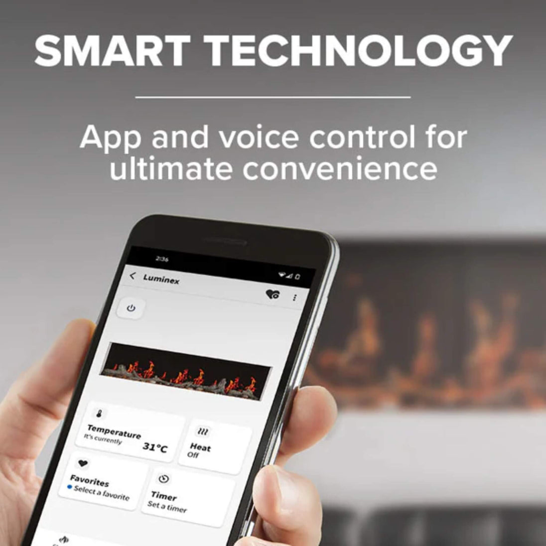 • Experience the future of home comfort with the Luminex Electric Fireplace, which integrates seamlessly with smart technology. Control settings through voice commands or your mobile device for effortless operation.