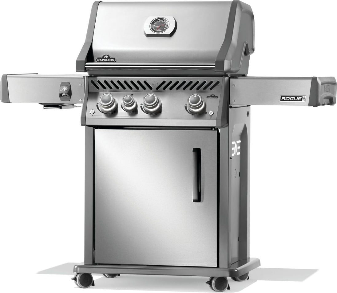 The Rogue® PRO 425 Stainless Steel Propane Gas Grill with Infrared Side Burner is designed for effortless grilling. With reliable ignition, ample cooking space, and an infrared sear station, this grill makes cooking flavorful meals a breeze. Crafted from durable stainless steel, it combines style with easy maintenance, making it perfect for grilling enthusiasts looking to elevate their outdoor cooking experience.