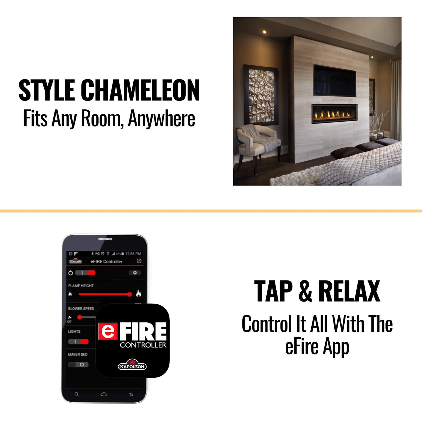 - Manage your fireplace effortlessly using the convenient eFire app on your mobile device.
