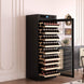 - The luxurious black wood exterior and sleek double-layer tempered glass door create a beautiful showcase for your prized wine collection.