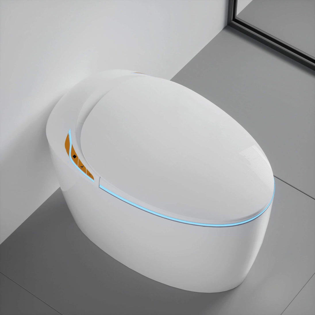 Elevate your bathroom experience with the Smart One-Piece Toilet With Bidet, Foot Sensor, LED Display, and Dryer. This all-in-one, sleek porcelain unit seamlessly marries elegance with advanced functionality to redefine comfort and hygiene in your daily routine. As the lid automatically greets you with soft ambient light upon approach, and warms your seat to the ideal temperature, you'll wonder how you lived without it. From precision washing modes tailored to your needs to instant warm air drying, this smart toilet transforms your personal care into a luxurious ritual.