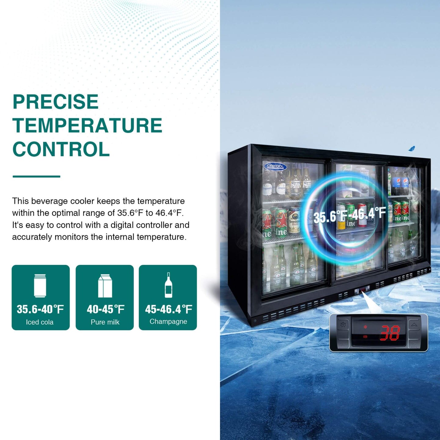Elevate your space with the Orikool 53-inch Back Bar Cooler, where sophisticated design meets exceptional function. Its three sleek sliding glass doors not only provide an enticing view of your beverage collection but also add a touch of modern elegance to any setting. Designed to impress, this cooler transforms your bar or entertainment area into a stunning showcase.