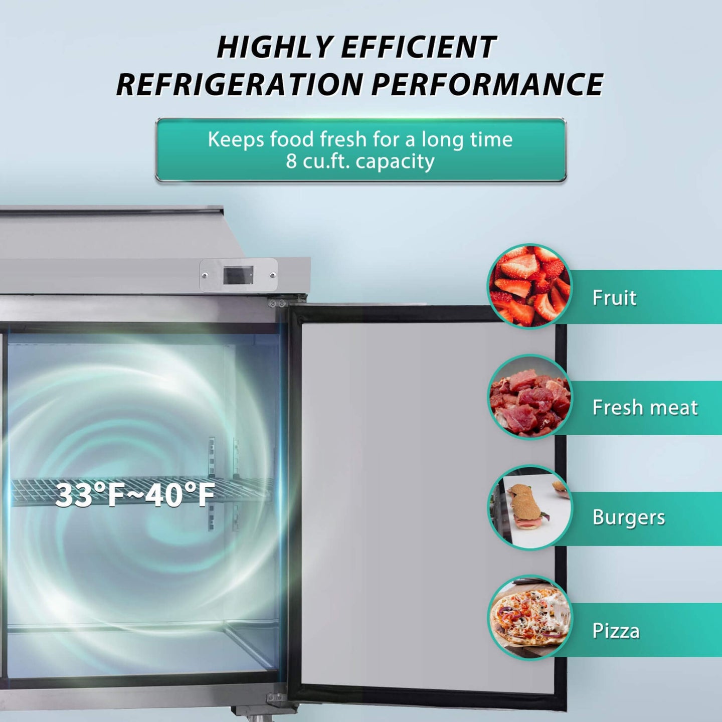 Its robust stainless steel construction, combined with a lift-up lid, anti-collision blocks, self-closing doors, and a massive, stable butcher block cutting board, provides an incredibly durable, organized, and user-friendly workspace that’s easy to clean and effortlessly movable on caster wheels. By choosing this DOE-compliant, ETL Certified unit with eco-conscious R290 refrigerant, you're not just buying a prep station you're investing in a superior, sustainable workflow that saves energy and maximizes productivity.